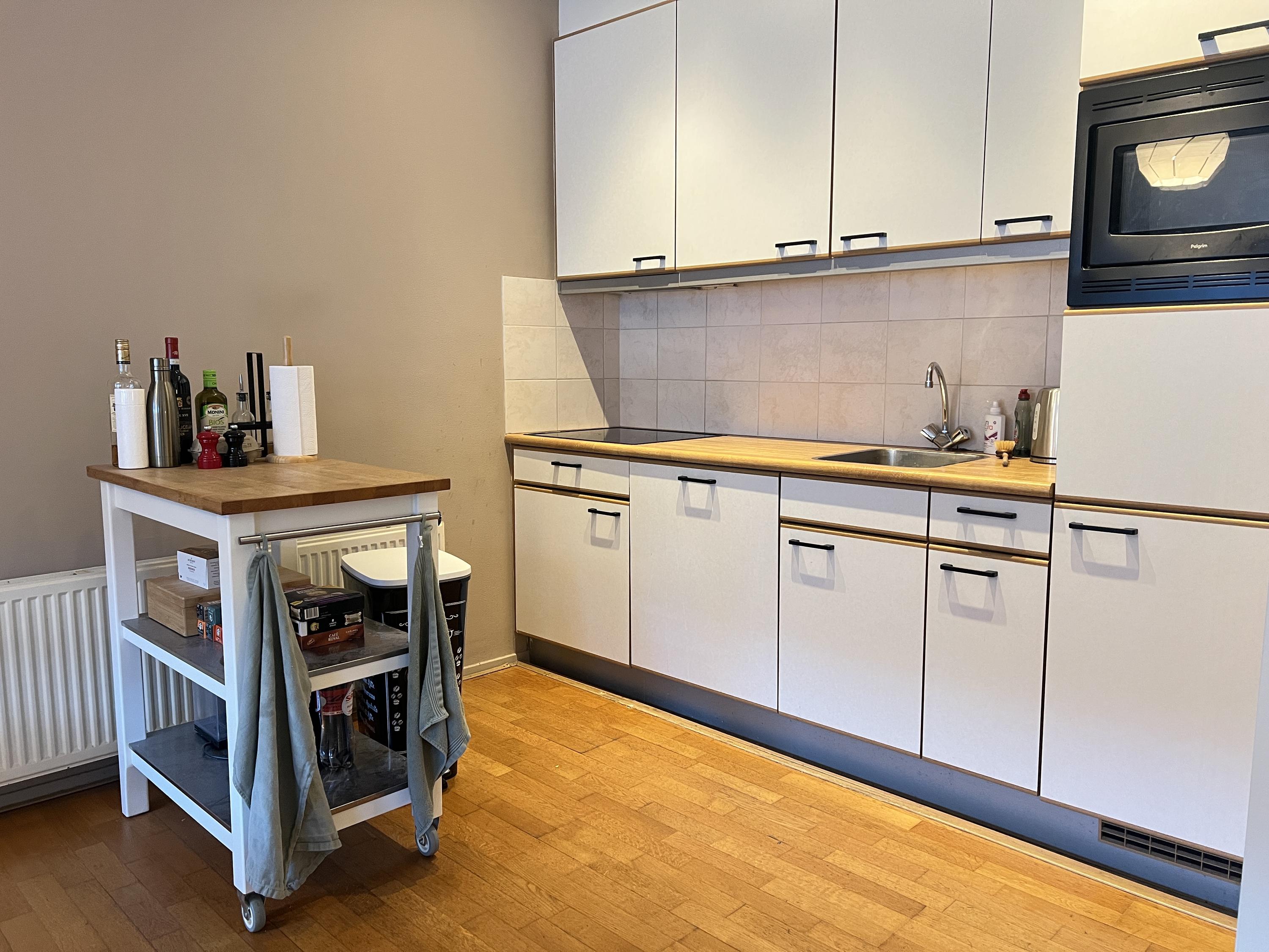 Het appartement beschikt over een lichte woonkamer, een aparte slaapkamer en een moderne, functionele keuken. De keuken is voorzien van alle benodigde inbouwapparatuur, waaronder een koelkast met vriesvak, vaatwasser en een combi oven/magnetron. Daarnaast is er een nette badkamer. Dankzij de praktische indeling is de woning ideaal voor een starter, student of young professional.